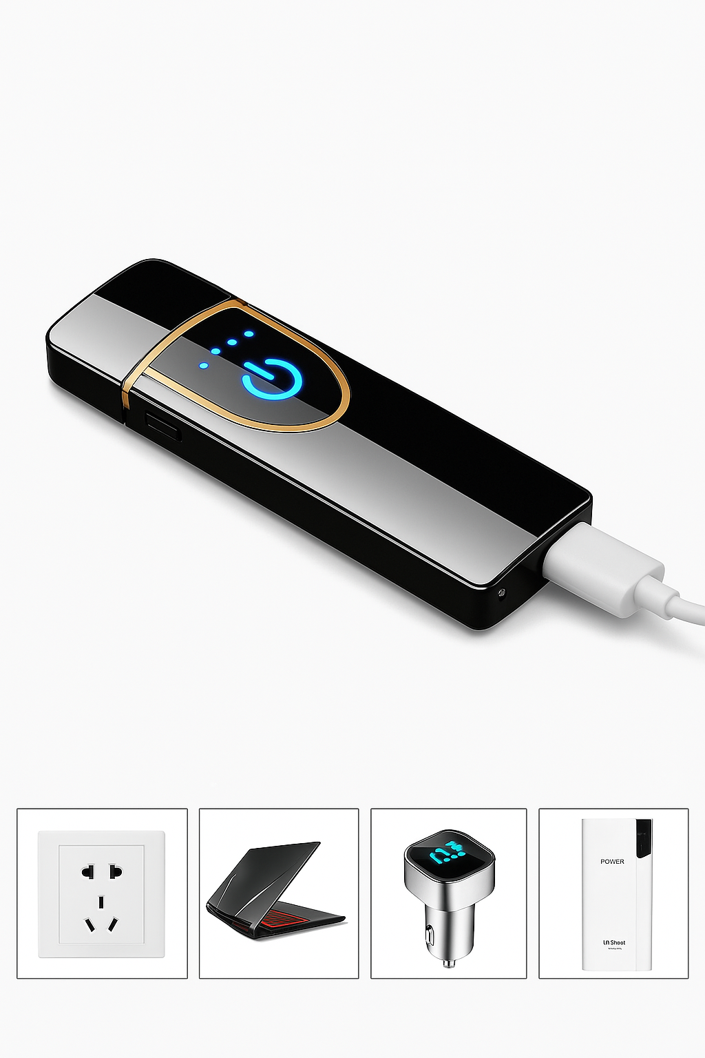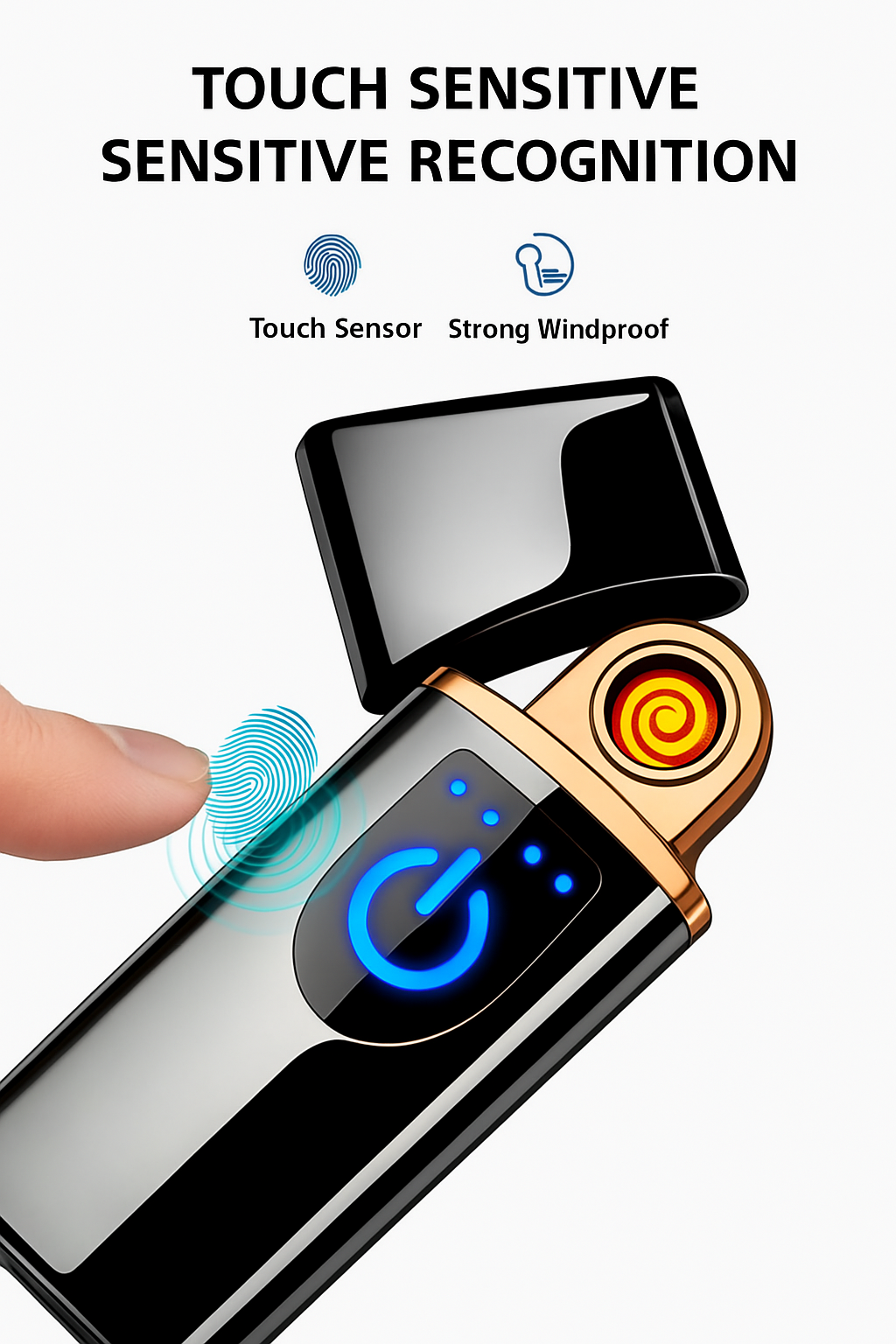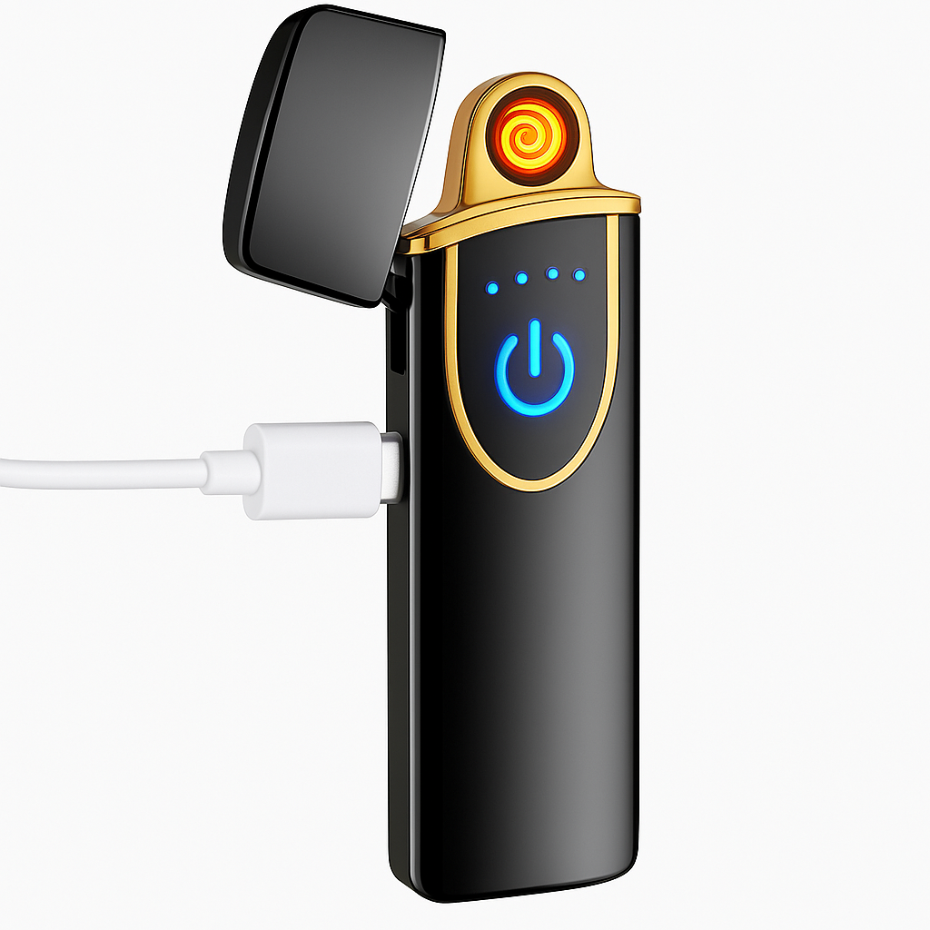 Este encendedor eléctrico combina diseño moderno con máxima practicidad. Su acabado negro elegante y su activación por sensor táctil lo convierten en un accesorio único y fácil de usar. Gracias a su sistema sin llama y resistente al viento, enciende en cualquier situación con total seguridad. Es recargable por USB, libre de gas y amigable con el medio ambiente. Ideal para quienes valoran la tecnología y el diseño en los pequeños detalles.